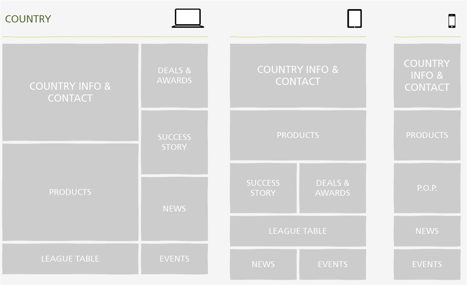 Daarnaast is de content gelaagd. “We hebben overal bekeken wat de hoogste prioriteit heeft en voor welke zaken men moet doorklikken. Ook voor distributie van de content via de verschillende devices is dat belangrijk; per device bestaat een andere prioriteit in content. We gebruiken de gelaagdheid om op een kleiner scherm minder informatie te tonen, terwijl de bron (CMS) hetzelfde blijft. Zo tonen we op smartphones alleen headlines, terwijl de browser een titel plus paragraaf laat zien.”
