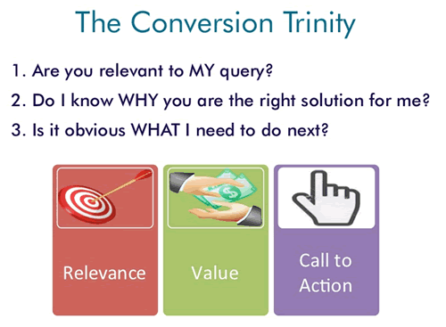 Bryan Eisenberg zijn zogeheten heilige drievuldigheid van conversie-optimalisatie is het resultaat van het groeperen van meer dan 1.100 parameters die de conversie beïnvloeden. Deze parameters had hij geïdentificeerd voor één van zijn boeken. De eerste van de drie is relevantie (“heb jij waar ik naar zoek”). Hoe zit het nu met relevantie in contentmarketing en – vooral – is relevantie genoeg?