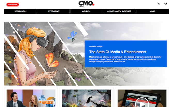 CMO.com delivers marketing insights, expertise, and inspiration for and by marketing leaders—all aimed at helping CMOs, senior marketers, and their teams become better marketers and deliver standout experiences in a digital world. To help marketers stay informed and get inspired, CMO.com offers interviews and advice from industry leaders, help and how-to guidance, curated marketing news, and data-driven research and insights—including Adobe Digital Insights research—from across the industry and around the world.