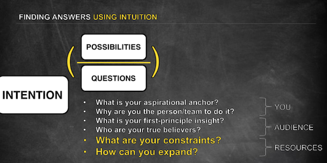 De spreker die vorig jaar het hoogste cijfer scoorde op CMworld mocht dit jaar een keynote verzorgen: Jay Acunzo, onder andere bekend van de podcast Unthinkable. Hij hield een fijn pleidooi over de kracht van intuïtie. Het is enorm makkelijk om iets van gemiddelde kwaliteit te maken in contentmarketing. Google een vraag en maak daar content omheen dat rechtstreeks de vraag beantwoordt. Dat is een gemakzuchtige methode, aldus Acunzo. Logisch werk levert voorspelbaarheid op en daarmee zal je je nooit van het gemiddelde onderscheiden. Terwijl je juist een hele business kunt bouwen op je 1st principle insight, zoals Acunzo het noemt.
