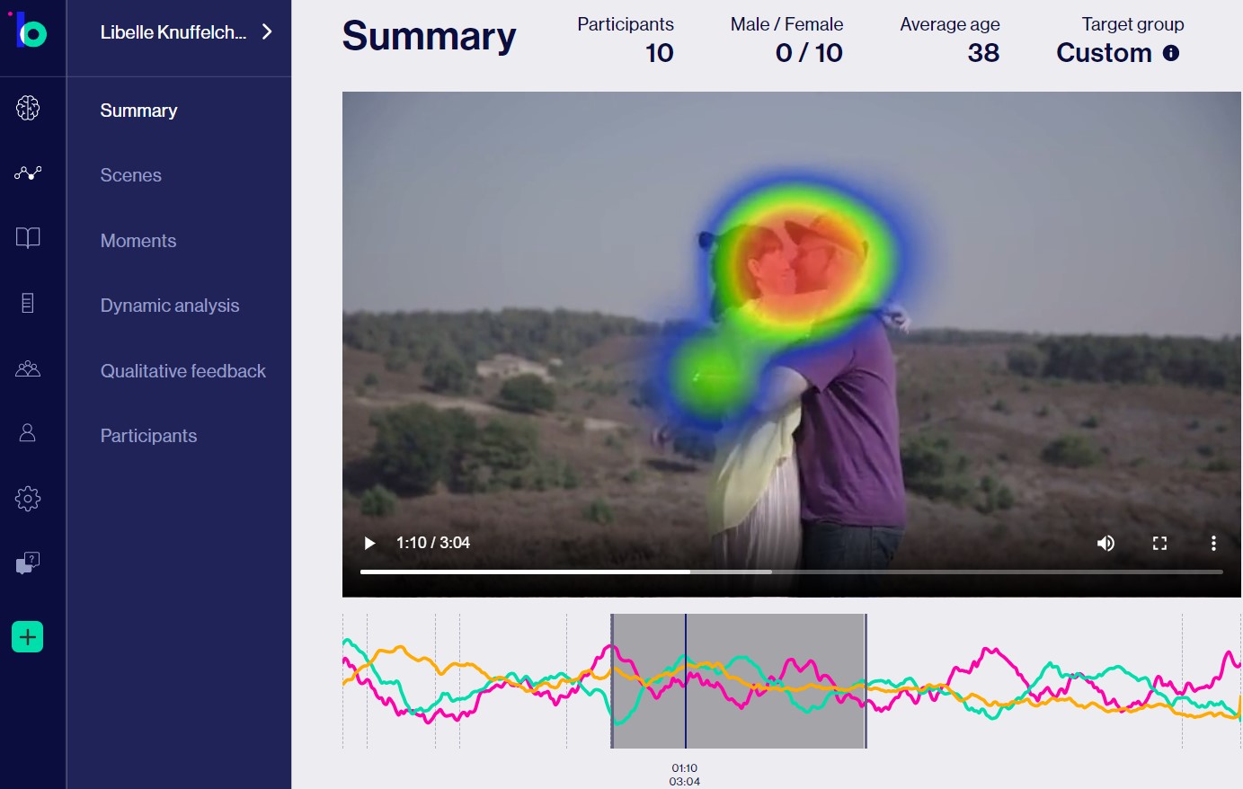 “Het stelt je in staat om te zien welke elementen de meeste impact maken of welke scènes effectiever zijn dan andere en waarom”, legt Anouk uit. “Met die inzichten kun je gericht optimaliseren. Dat kan overigens prima met het materiaal dat je al geschoten hebt: volgorde van scènes, blurring, highlighten, aanpassen van visuele cues, zoals kleuren of merklogo’s. Het doet niets af aan de creativiteit, het stelt je als contentmaker juist in staat om het creatieve concept nog beter te maken. Emotie-data dirigeert het concept van een video niet; het is juist het perfecte instrument om te finetunen. Je krijgt beter inzicht in wat er leeft bij de doelgroep en tegelijkertijd blijf je trouw aan het creatieve concept.”