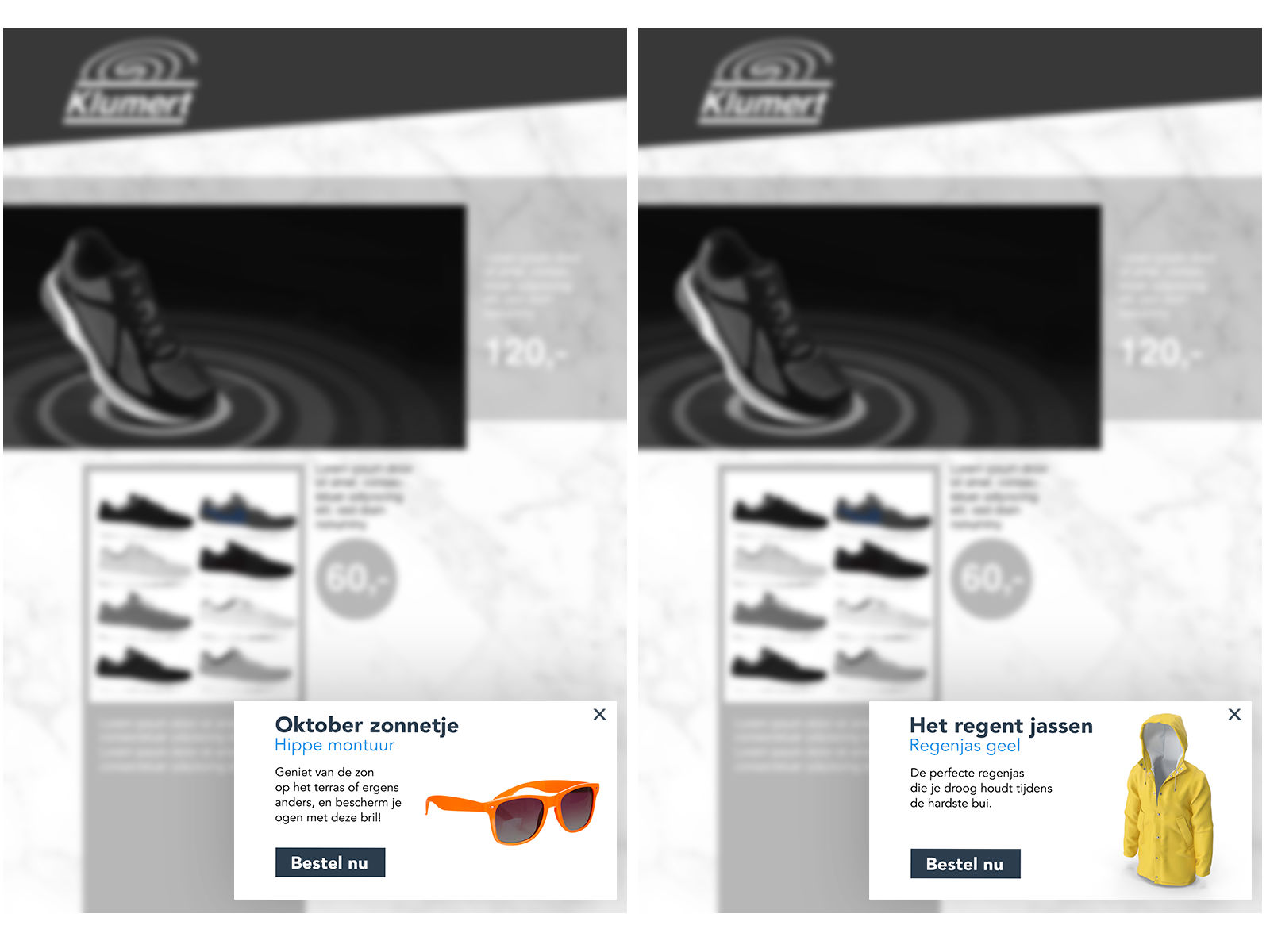 Een box is een effectieve manier om aanbiedingen extra aandacht te geven. De aanbieding komt dan in beeld over de digitale folder heen. Ook deze content past zich aan de interesses van de lezer of de omgevingsfactoren aan. Nu het weer regelmatig begint te regenen, worden de regenjassen aanbevolen, terwijl de eerste week van oktober de laatste zonnebrillen nog werden getoond. Met een box kan je je conversie vanuit de folder laten stijgen van 25 procent naar 30 procent.