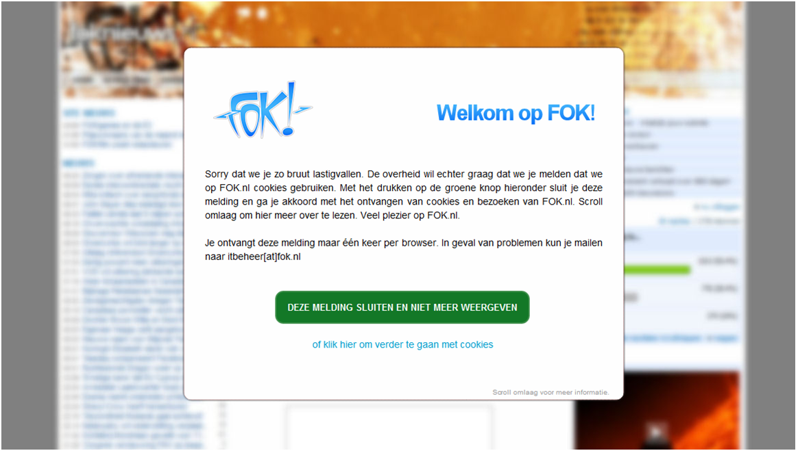 Een voorbeeld over hoe genuanceerd het ligt: een aantal sites heeft een openingsscherm dat de toegang tot de site blokkeert. Daarin staat beschreven dat je eerst cookies moet accepteren. Dat wordt over het algemeen als een niet prettige methode ervaren omdat je direct de site op wilt. Tegelijkertijd is dat heel open, eerlijk en transparant: dat kan ook een voordeel zijn. De wijze waarop Fok.nl bijvoorbeeld informatie geeft over de cookies die de website plaatst, werd door respondenten tijdens de groepsdiscussie als te agressief ervaren. Om die reden staat Fok.nl laag, slechts 21 procent van de respondenten in het onderzoek zou op de website van Fok.nl cookies accepteren. Ter vergelijking: bij de topspelers in het onderzoek accepteert 63 procent van de respondenten cookies.