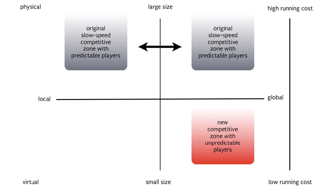 De wereld waarin bedrijven zich begeven is veranderd. Vroeger wat het duidelijk wie je concurrenten waren en wat hun propositie was. Tegenwoordig is het veel moeilijker om te zien tegen wie je in de race zit en zijn de spelers zelf steeds flexibeler geworden. Pas op voor de jongens in de garage die voor de helft van jouw prijzen kunnen werken. Vaak zien klanten het verschil in kwaliteit zelf niet. Hun aandeel in de markt wordt steeds groter.