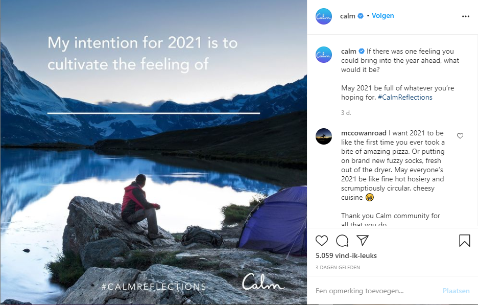 Een goed voorbeeld van content die emotie oproept is de Meditatie-app Calm. Zij gebruiken rustgevende kleuren en zen-fotografie in hun content om een ontspannen, gefocust gevoel te creëren.