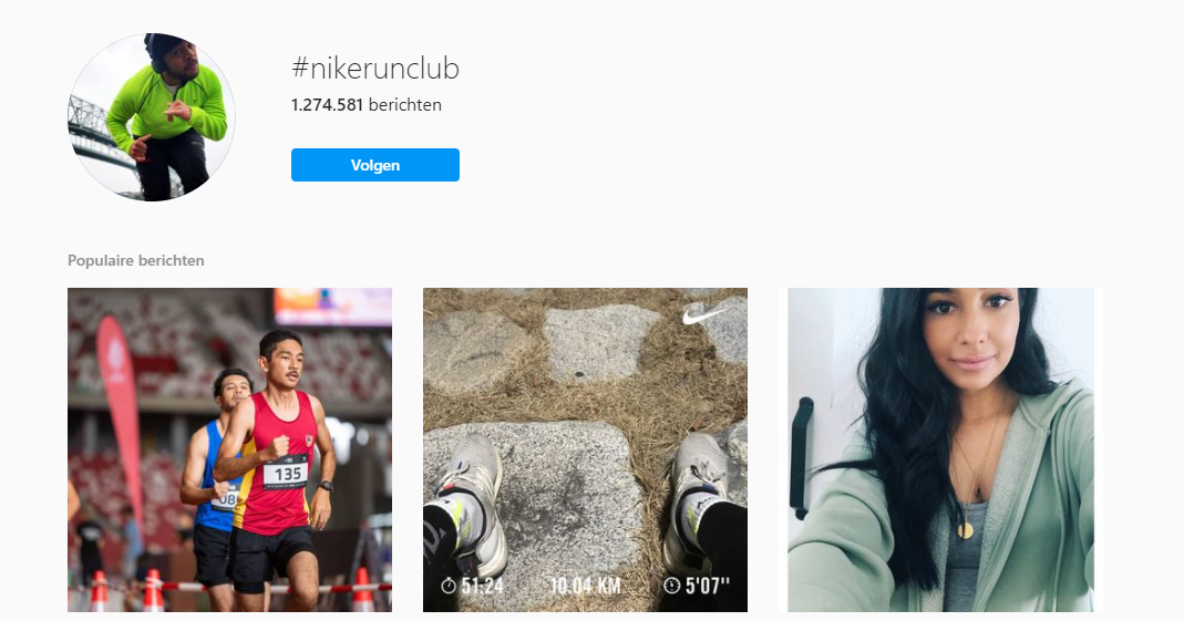 De Nike+ Run Club is uitgegroeid tot een grote community waar Nike verschillende soorten content deelt om hun doelgroep actief te houden. Van hardlooppodcasts en artikelen tot diverse challenges waar de doelgroep aan mee kan doen. Door de #justdoitsunday of #nikerunclub te volgen, krijgt Nike ook weer inzicht in de impact van hun content.