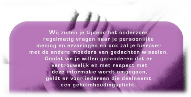 Naast de log-in module is het aan te raden de participanten een non-disclosure agreement (NDA) te laten tekenen. Alles wat de participant deelt en leest van andere crowd-members, blijft op het platform en mag niet worden verspreid buiten het platform om. Dit kan met een insteek zijn dat uitlekken van informatie, onaangename juridische consequenties ten gevolge heeft. Maar het kan ook positiever. Een voorbeeld dat bij een recentelijk project werkte en wat door een verzamelde crowd van moeders goed beviel: