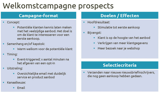 Voorbeeld: opzet welkomstcampagne gericht op de prospect
