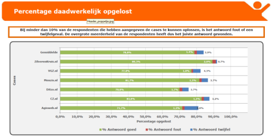 Van respondenten die zeggen de informatie gevonden te hebben, wordt het antwoord ter controle door WUA! nagekeken. In meer dan 90% van de gevallen blijkt het zonder twijfel inderdaad om de juiste informatie te gaan.