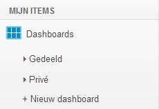 Als je een nieuw dashboard maakt, wordt deze in eerste instantie toegevoegd aan je privé-dashboards. Wanneer het dashboard dan klaar is om gedeeld te worden, vind je onder de button ‘Delen’ de functie om het dashboard in een gedeelde ruimte te zetten.
