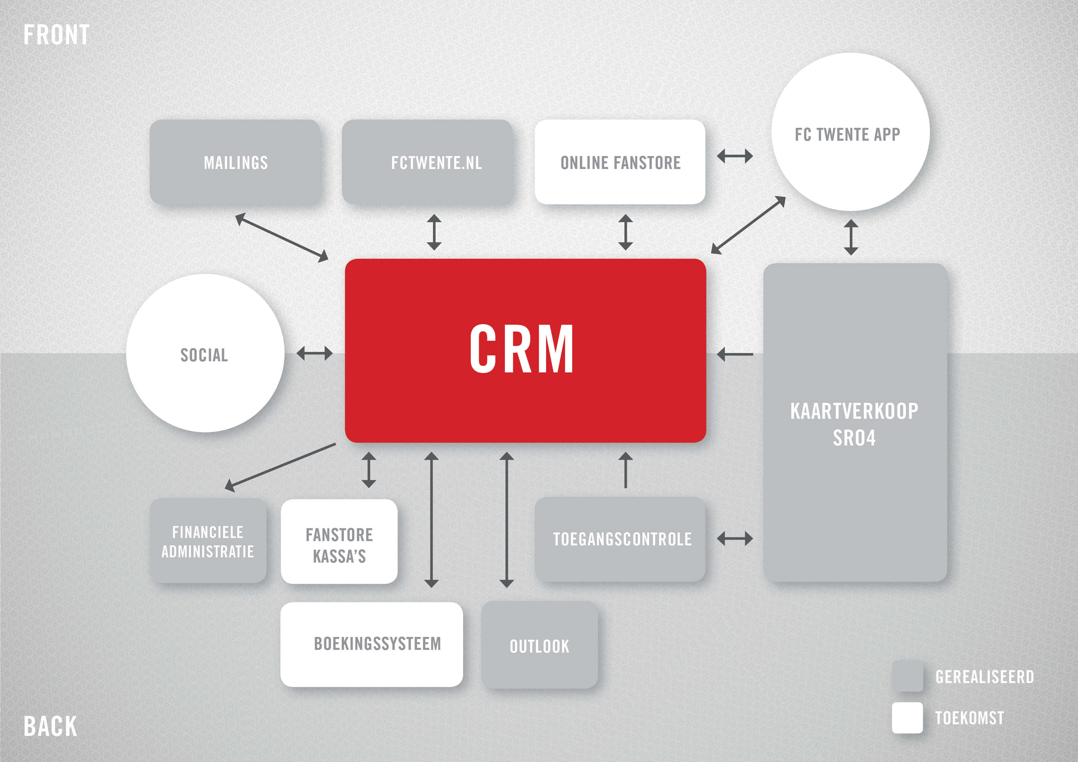 Al die informatie komt samen in het crm-systeem, dat centraal staat in het systeemlandschap van FC Twente. Op dit moment biedt deze klantdata de mogelijkheid om via de website, webshop, app en e-mail de doelgroep persoonlijk te benaderen. Daarnaast gaat de club dit jaar aan de slag met een nieuwe site waarbij content en functionaliteit wordt afgestemd op de wensen van de bezoeker. Dan krijg je als skyboxhouder een andere site te zien met andere functionaliteiten dan iemand die lid is van de Kidsclub. De laatstgenoemde krijgt bijvoorbeeld een uiting te zien over een Sinterklaasevenement, waar de zakelijke doelgroep informatie krijgt over een netwerkbijeenkomst.