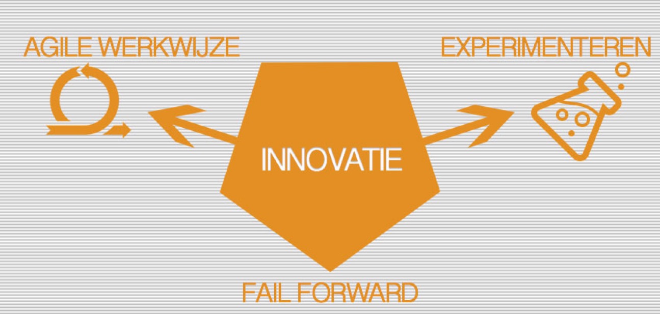 Als je start met de ontwikkeling van innovaties, is van tevoren niet zeker wat wel en niet werkt. Innoveren draait om een lerende organisatie waarin ruimte is om te experimenteren. En de meeste experimenten zijn niet succesvol. Toch zijn niet-succesvolle experimenten nuttig, omdat je in ieder geval weet dat je het op deze manier niet weer hoeft te proberen. In Sillicon Valley wordt deze werkwijze fail forward genoemd. Voor organisaties waarvan de cultuur gericht is op KPI’s en succesvolle implementaties, heeft deze werkwijze van experimenteren en (vooral) veel te falen een behoorlijke impact.