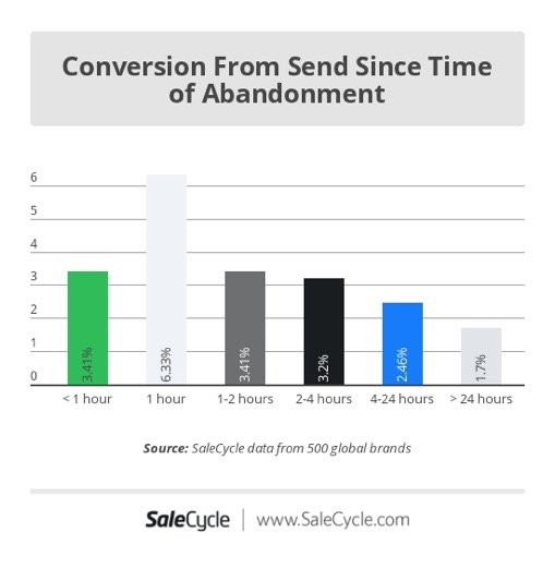 - E-mails gericht op winkelwagenverlaters worden 1 uur na het verlaten van de wagen het best geopend.