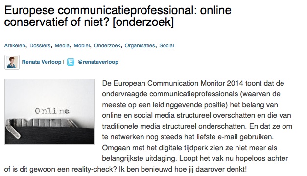 Dat was nogal een bericht, midden in de zomer: Europese communicatieprofessionals overschatten het belang van online en social media structureel en onderschatten die van traditionele media. De resultaten van de European Communication Monitor 2014 deed menig communicatie-professional de oren spitsen.