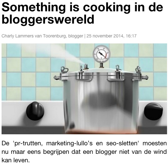 Krachttermen als ‘PR-trutten, marketing-lullo’s en SEO-sletten’, geuit door bloggers, waren voor Charly Lammers van Toorenburg aanleiding voor deze blog. Wat was er aan de hand? Een aantal bloggers uitte online zijn ongenoegen over PR-‘belmeisjes’ die weer eens om gratis publiciteit voor hun klanten kwamen zeuren, zonder dat daar een betaling tegenover stond.