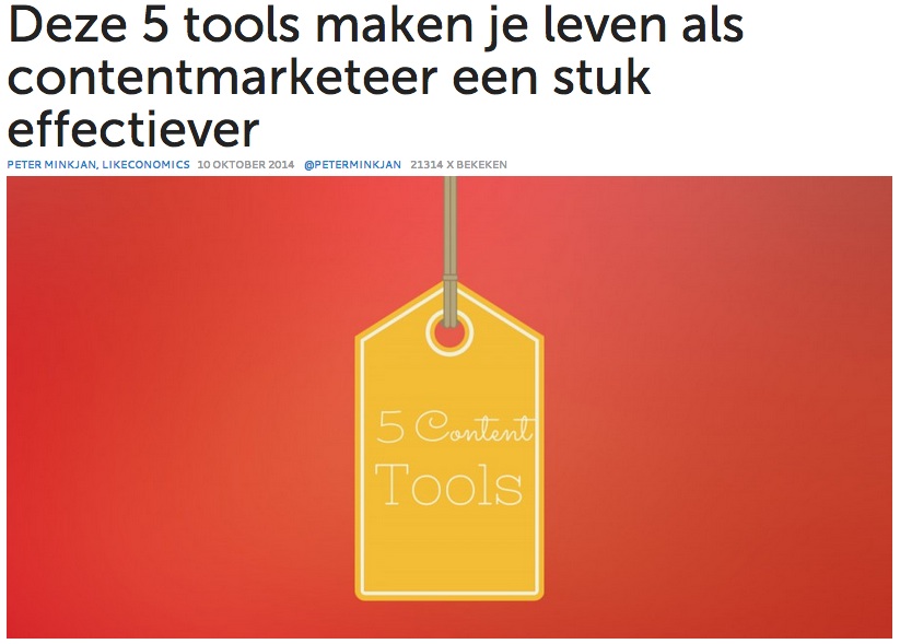 Tools: je kunt er niet genoeg van hebben. En als iemand weet wat er te koop is, dan is het Peter Minkjan van Likeconomics wel. Zelf heb ik design-tool Canva meteen aan mijn bookmarks toegevoegd dankzij deze blogpost op Marketingfacts.