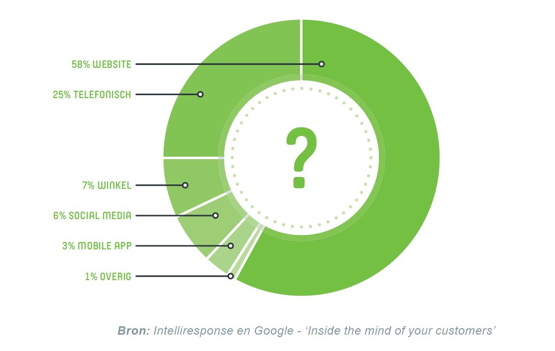 Opmerkelijk is echter dat veel organisaties (online) klanten met servicevragen naar offline kanalen blijven verwijzen als ze er niet uitkomen. En dat terwijl onderstaand diagram duidelijk maakt wat de eerste informatiebron is die klanten met een servicevraag raadplegen. Juist ja, de website: