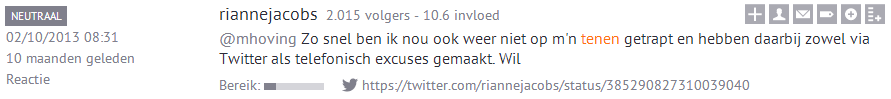 Doordat ons webcare team accuraat reageerde op de negatieve berichtgeving, konden we het zeer snel ombuiging naar iets positiefs. Hiermee werd bovendien een stroom aan negatieve vervolguitingen voorkomen.