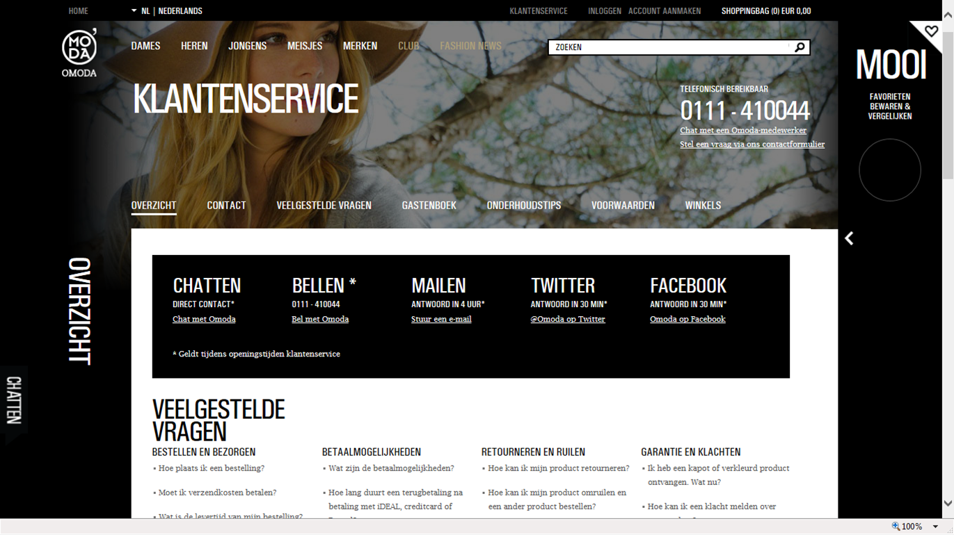 Prettig en toegankelijk klantcontact zien we terug bij Omoda. Hoe fijn is het dat je als klant zelf je kanaal kan kiezen, overal gebruik kunt maken van chat en niet hoeft te graven naar het telefoonnummer.