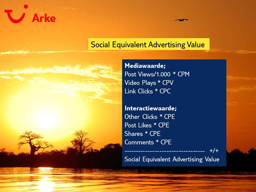 Voordat we het implementatietraject zijn gestart, gingen we eerst de onvermijdelijke wat-levert-het-op discussie door. Zeker toen waren er nog bijna geen breed geaccepteerde rekenmodellen waarmee een betrouwbare waarde berekening kan worden gemaakt. Inmiddels zijn we 2 jaar verder en gebruiken we het model ‘Social Equivalent Advertising Value’. Oftewel, wat zou het ons kosten als we dezelfde impact willen bereiken met de inzet van andere online media. Dit model wordt ook gebruikt door – onder andere – Holland.com, Visit Ireland en TUI UK&I.