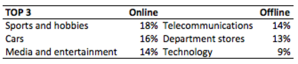 Wellicht nog even ter uitleg ten aanzien van de verschillen tussen experience-, search- en credence-producten. De experience-producten (producten die je alleen kunt beoordelen door ze zelf te ervaren zoals wijn en vakanties) worden online significant vaker besproken dan de search-producten (producten waarvan je de kwaliteit ‘op zicht’ kunt beoordelen, zoals groenten, kaas of een autoband). Offline worden search-producten op hun beurt weer significant meer besproken dan credence-producten (producten die je bijna niet zelf kunt beoordelen en waarbij je vooral op vertrouwen en geloof af moet gaan, zoals de diensten van een notaris of een advocaat).