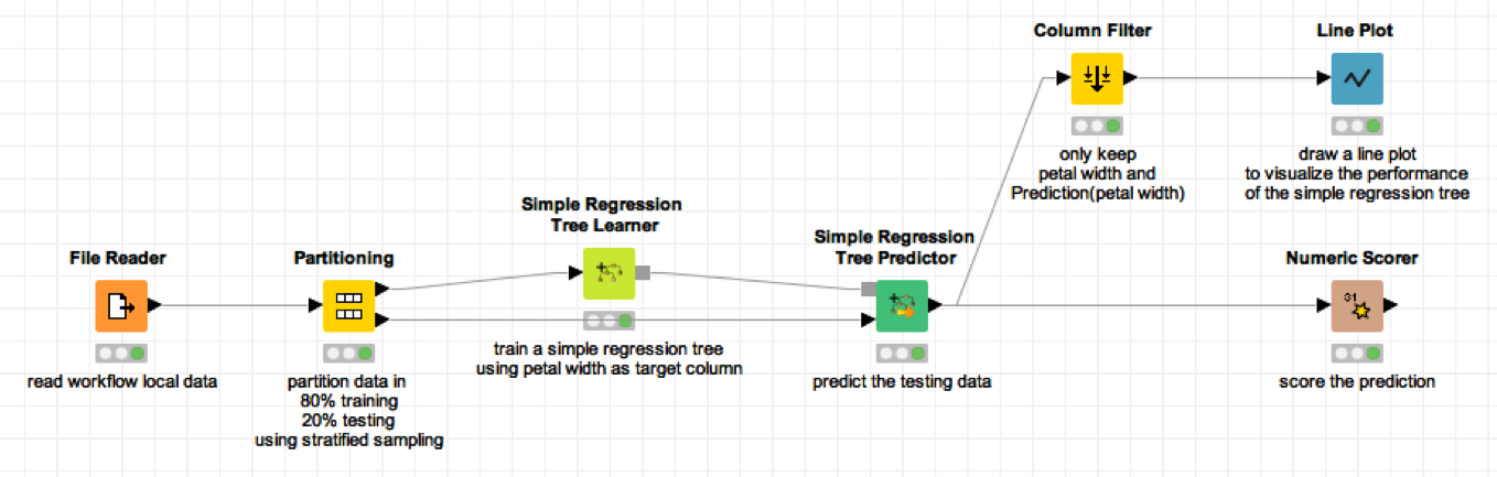 Een voorbeeld van het bouwen van een model in een workflow-gebaseerd analyticsplatform.