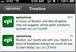 Over slechte smaak gesproken: Epicurious, een website voor liefhebbers van lekker eten, besloot hun post over een smakelijk ontbijt iets relevanter te maken. Dit deden ze door in te haken op de aanslag tijdens de marathon van Boston.
