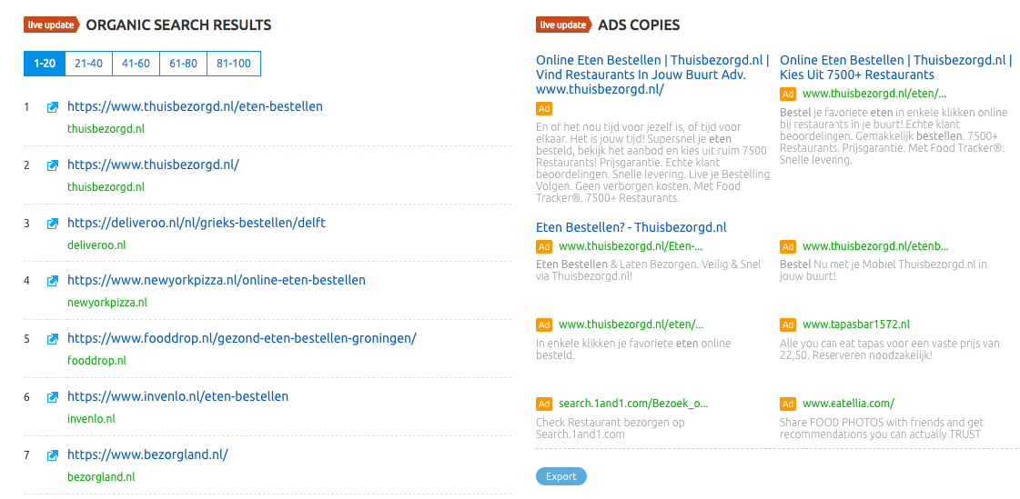 Al deze informatie is gebaseerd op de analyse van je concurrenten die streven naar een hoge plaats in de zoekmachines voor dezelfde zoekwoorden als die van jou.