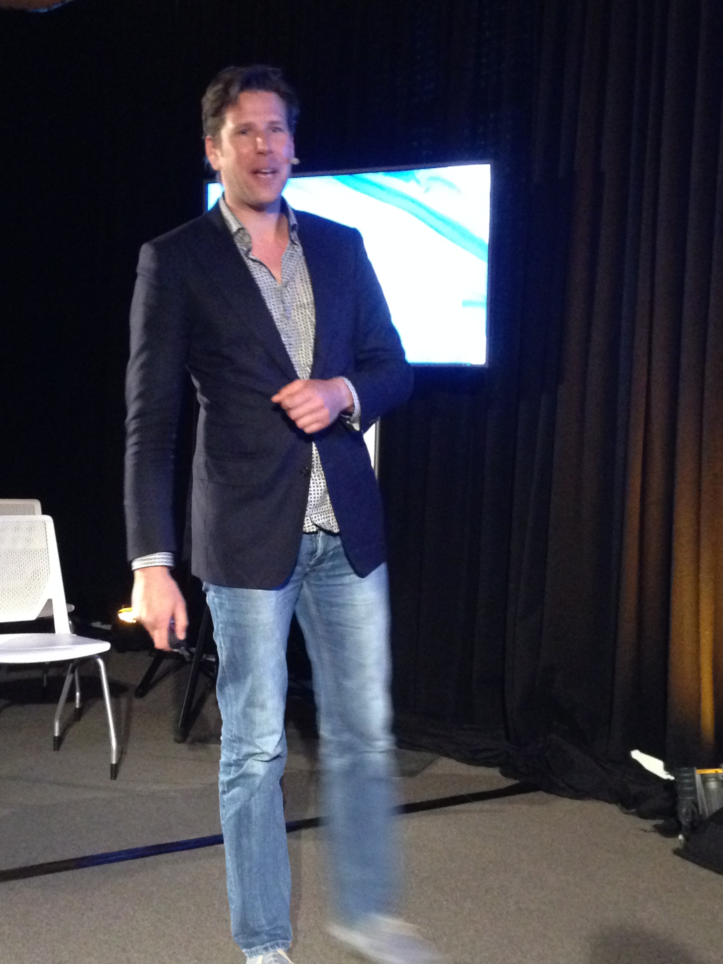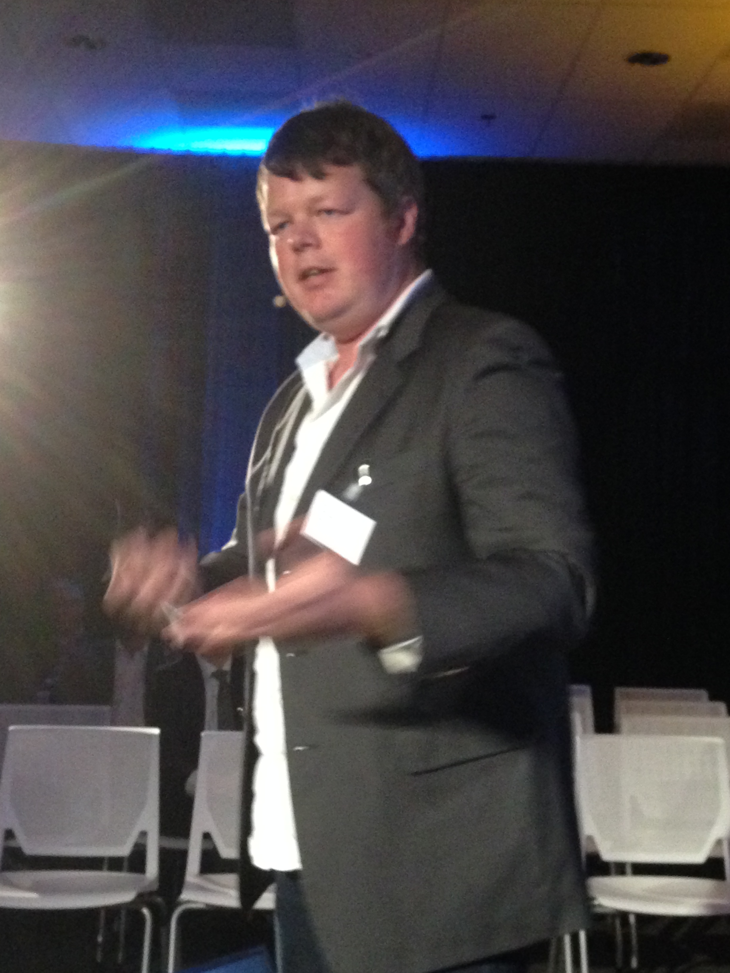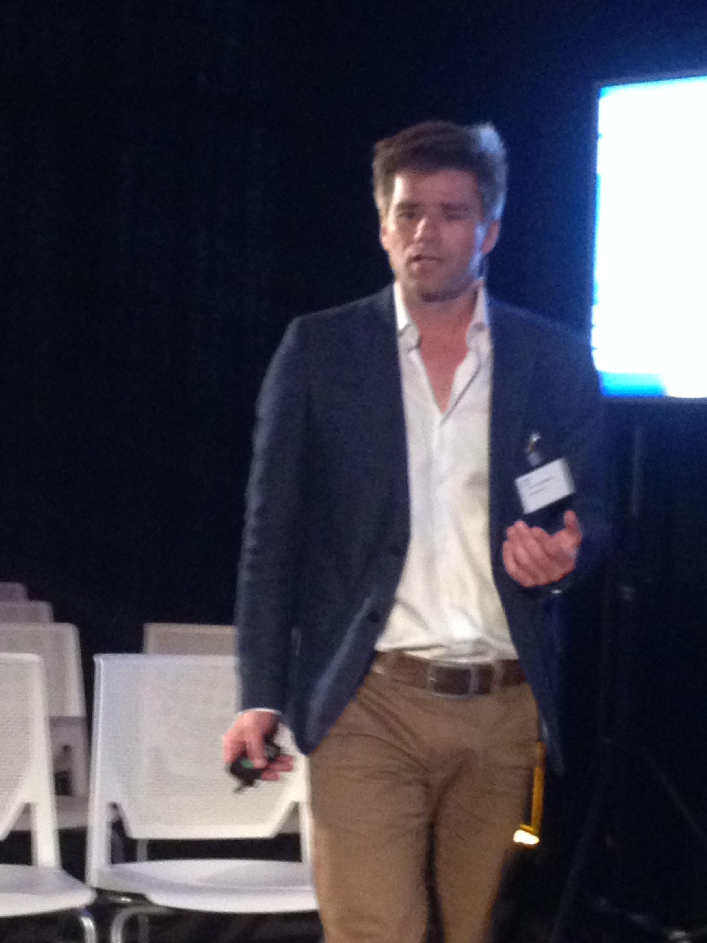 De eerste spreker was Mark Raben, chief technology architect binnen SAP. Mark Raben startte met een filmpje van zijn ‘broer’ die aan het hardlopen was. Hij vertelde over hoe iemands loopgedrag gemonitord kan worden en dat je op een gegeven moment ook een advies kunt geven voor het aanschaffen van nieuwe schoenen. Mark wilde meer vertellen over de toepassingsmogelijkheden van data. De term big data noemde hij geen een keer in zijn speech. Dat werd ook opgemerkt aan het eind van zijn lezing. “Definitie van big data is niet belangrijk, het gaat om de toepassing ervan”.