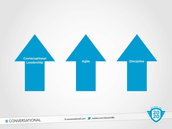 Conversational leadership: er is nood aan een leider die de nieuwe context perfect begrijpt en liefst zelf actief is in de conversatiewereld. Nog belangrijker wordt het management van de why.
