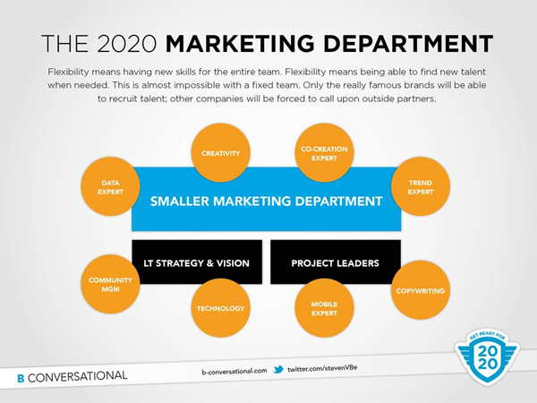 Hoe zien jullie de marketingorganisatie in 2020? Welke aspecten zijn nodig om te slagen? Ben benieuwd naar jullie ideeën.