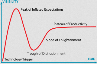Als we deze lijst met een klassieker willen openen, dan is een voor de hand liggende keuze de wet van Moore. In een slordige herformulering: ICT wordt elke 18 maanden twee keer zo klein/snel/scherp voor hetzelfde geld. Maar technologische voortuitgang is complexer dan dit overzichtelijke verband. Het is ook een proces van adaptie. Innovaties moeten hun plek vinden in de samenleving. Dat proces wordt per innovatie door onderzoeksbureau Gartner jaarlijks gemonitord in hun Hype Cyle of Emerging Technology. De clou: veranderingen worden vaak op de korte termijn overschat en op de lange termijn onderschat.