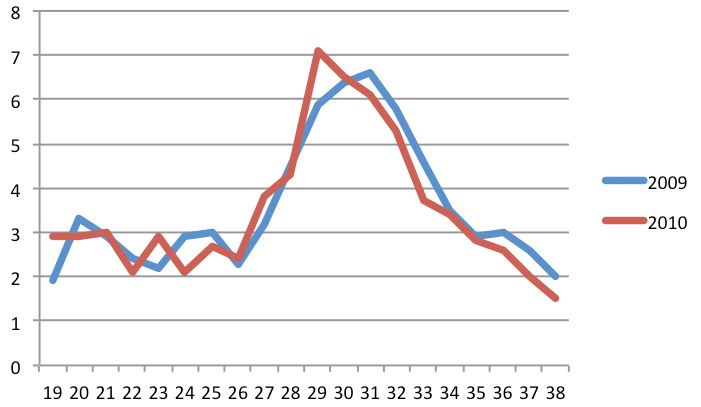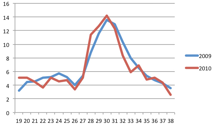 De gegevens uit 2009 en 2010 hebben we in onderstaande grafieken weergegeven. De eerste grafiek beeldt het totaal van de vakantiedagen af, dus zowel in binnen- als buitenland.
