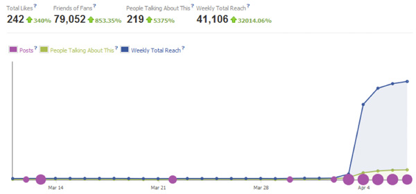 het bereik van de Facebook pagina was in april ca. 180 mensen;