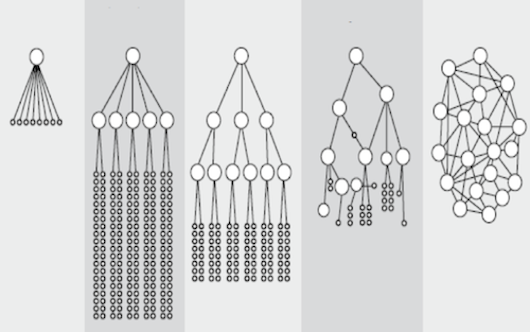 Om deze barrière te slechten hebben we ‘command and control‘-hiërarchieën zoals koninkrijken, kerken, staten en bedrijven in het leven geroepen. Het is een noodzakelijk kwaad om te kunnen samenleven in grote groepen. Je moet echter van goede huize komen en in sterke schoenen staan om allerlei verleidingen aan de top te weerstaan. Macht leidt al snel tot machtsmisbruik door de personen die zich aan de toppen van deze hiërarchieën bevinden. In de documentaire ‘The Corporation‘ (2003) worden bedrijven zelfs een-op-een vergeleken met psychopaten. De economische crisis van 2008 is misschien nog wel het beste voorbeeld om duidelijk te maken hoe het vertrouwen beschaamd kan worden.