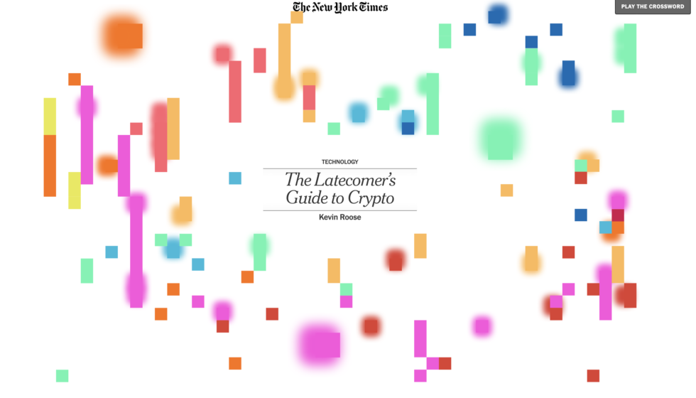 Kevin Roose is de technologie columnist van de New York Times. Hij heeft een indrukwekkende poging gedaan om in Jip en Janneke taal te schrijven wat crypto nu precies is en wat de verschillende verschijningsvormen zijn. Zoals hij dat zelf beschrijft: “Onlangs heb ik enkele maanden doorgebracht met het lezen van alles wat ik kon over crypto. Maar ik ontdekte dat de meeste beginnershandleidingen de vorm aannamen van saaie podcasts, nauwelijks onderzochte YouTube-video’s en blogposts geschreven door hopeloos bevooroordeelde investeerders. Aan de andere kant werd veel ondermijnd door onnauwkeurigheden en achterhaalde argumenten, zoals de bewering dat crypto goed is voor criminelen, ondanks het groeiende bewijs dat crypto’s traceerbare grootboeken het slecht geschikt maken voor illegale activiteiten. Wat ik niet kon vinden was een nuchtere uitleg van wat crypto eigenlijk is en hoe het werkt, voor wie het is, wat er op het spel staat, waar de strijdlijnen worden getrokken samen met antwoorden op enkele van de meest voorkomende vragen die het oproept”. En ik moet toegeven dat hij daar erg goed in geslaagd is. Een very long read over crypto, NFT, Web3, DAO’s en DeFi. Maar in begrijpelijke taal, heldere voorbeelden en zeer informatief. De laatkomersgids voor cryptografie is wat mij betreft voor iedereen die zich er nog in wil verdiepen een absolute aanbeveling.