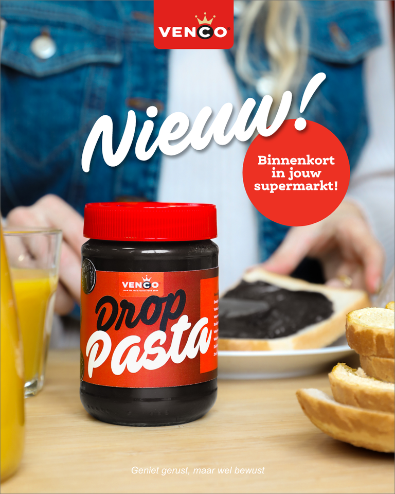 Klassiekertje dit, de onmogelijke product-extensie met een ‘wie weet’-gehalte van heb ik jou daar. Naar buiten gebracht via de officiële Venco-kanalen op Facebook en voorzien van de ronkende waarschuwing: ‘smul gerust maar wel bewust’. “Binnenkort verkrijgbaar in jouw supermarkt! Onze enige echte Drop Pasta! Welke dropliefhebber moet deze sowieso proeven?”