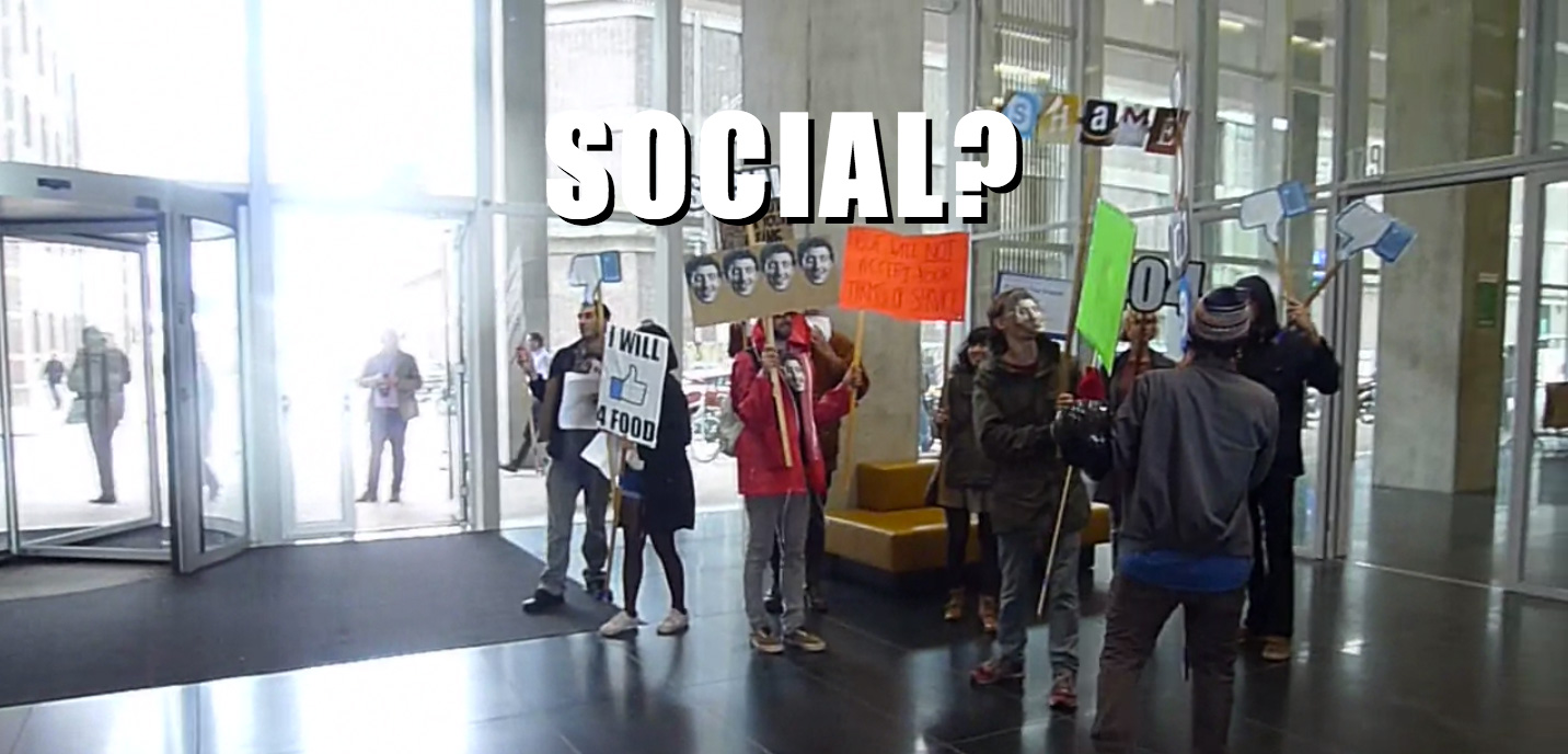 Dat had het makkelijk kunnen zijn, maar Maarten ontkent iets met de anti-socialmediademonstratie te maken te hebben gehad. Dat maakt het ook zo leuk! Later werd duidelijk dat de demonstranten van het Piet Zwart Instituut kwamen. Bekijk de opnames van de demonstratie.