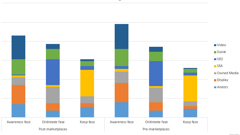 Het veranderend zoekgedrag van consumenten heeft vanzelfsprekend impact op de customer journey. Het merendeel van de respondenten geeft dan ook aan dat de manier waarop online marketingkanalen, die traditioneel meer upper funnel zijn gericht, ná de opkomst van marketplaces licht zijn verschoven naar een meer koopfasegerichte aanpak (lower funnel). Ieder touchpoint op een marketplace is immers toegespitst op het overtuigen van de klant om een aankoop te doen. Een tactiek die, nu marketplaces ook op de Nederlandse markt steeds dominanter worden, ook binnen andere onlinemarketingkanalen wordt toegepast.