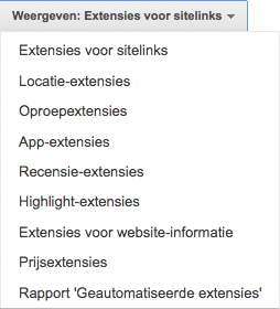 Je kan in je eigen AdWords-account bekijken wat de bijdrage van de advertentie-extensies is. Ga in AdWords in de menubar naar “advertentie-extensies”.