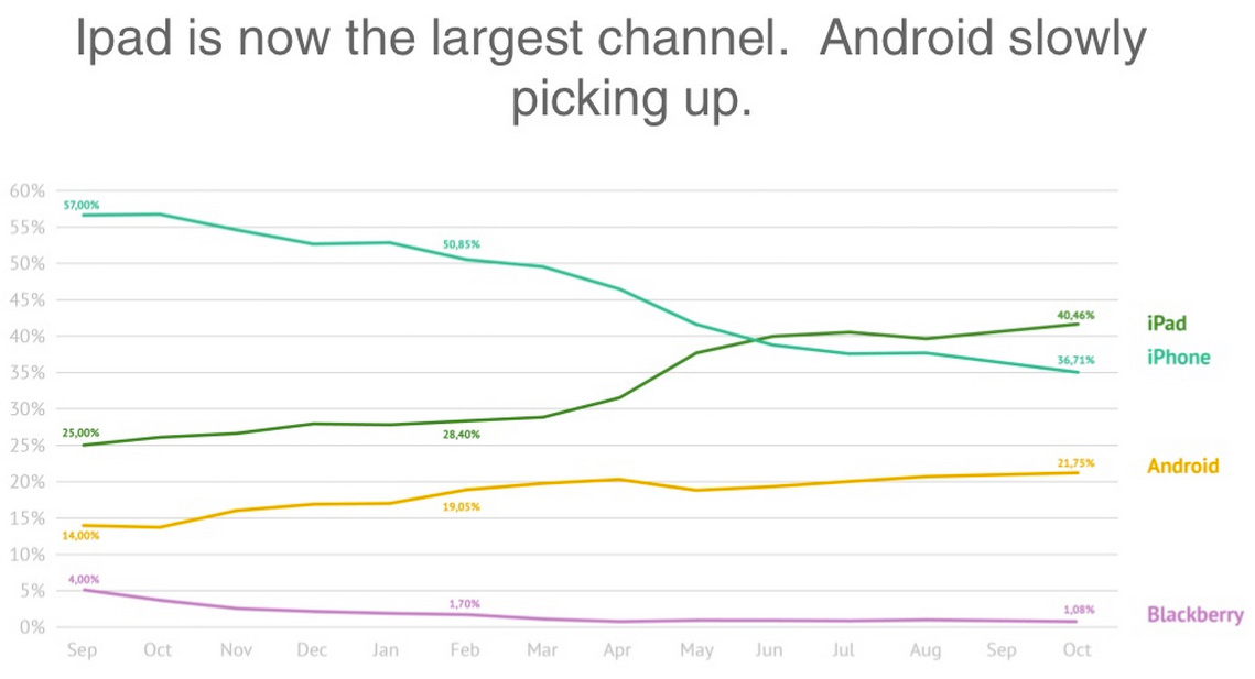 Overigens zetten de meeste retailers vooral in op het stimuleren van commerce en betalingen via de tablet, en dan m.n. de iPad, omdat de conversie daarop hoger ligt dan op mobiele telefoons.