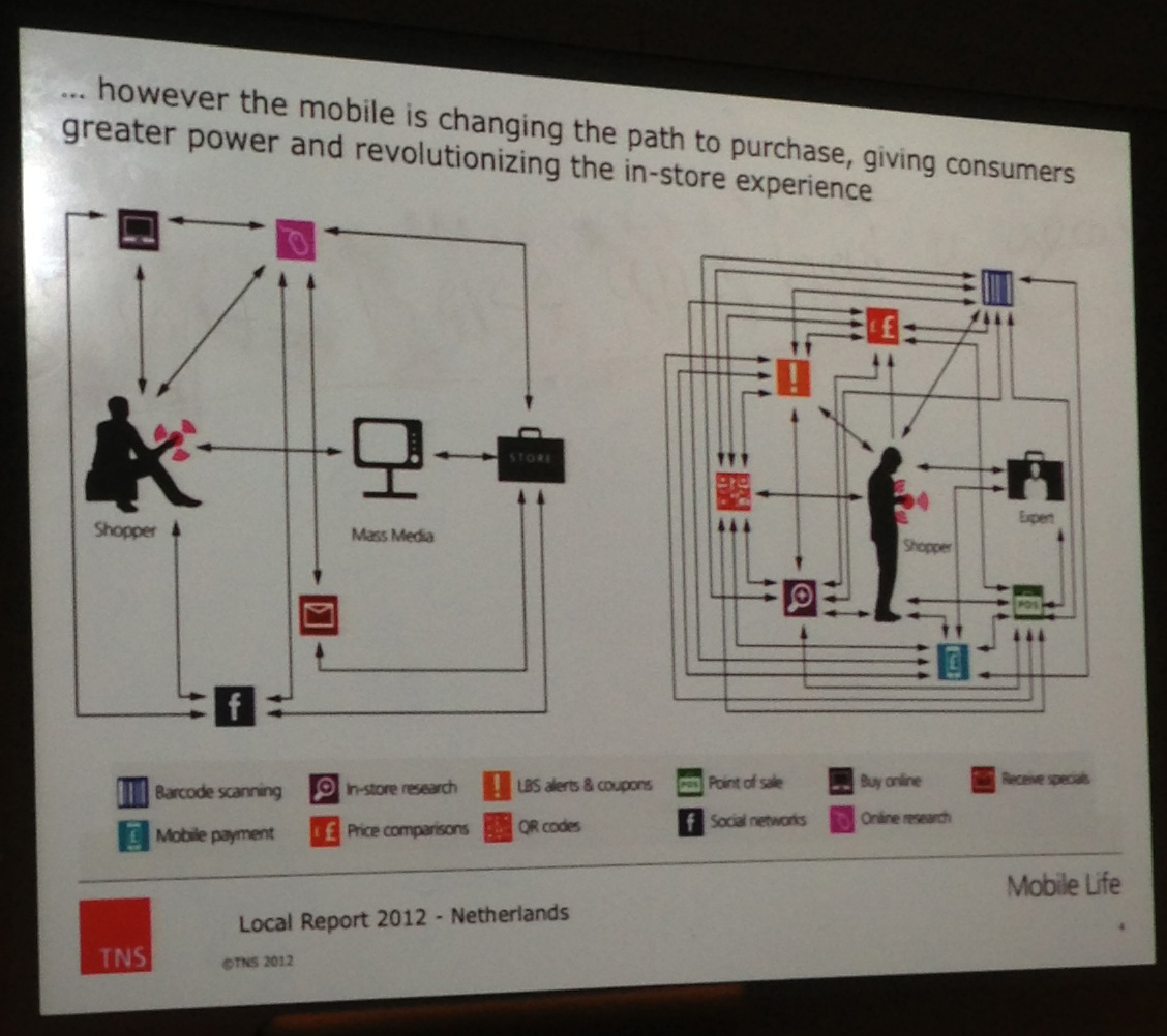 Michel Willems, mede-oprichter van One Stop Webshop, gaf een interessante visie op hoe je mobiel succesvol inzet. Hij haalde het voorbeeld aan van zijn vader, die veel boeken leest op de iPad. De belangrijkste reden? Dan kan hij makkelijk de letters groter maken, want hij ziet niet meer zo goed. Een jaar geleden had niemand bedacht dat zijn vader de iPad zou gebruiken, laat staan op die manier. Maar juist dit soort kleine inzichten maken 'mobile commerce' succesvol.