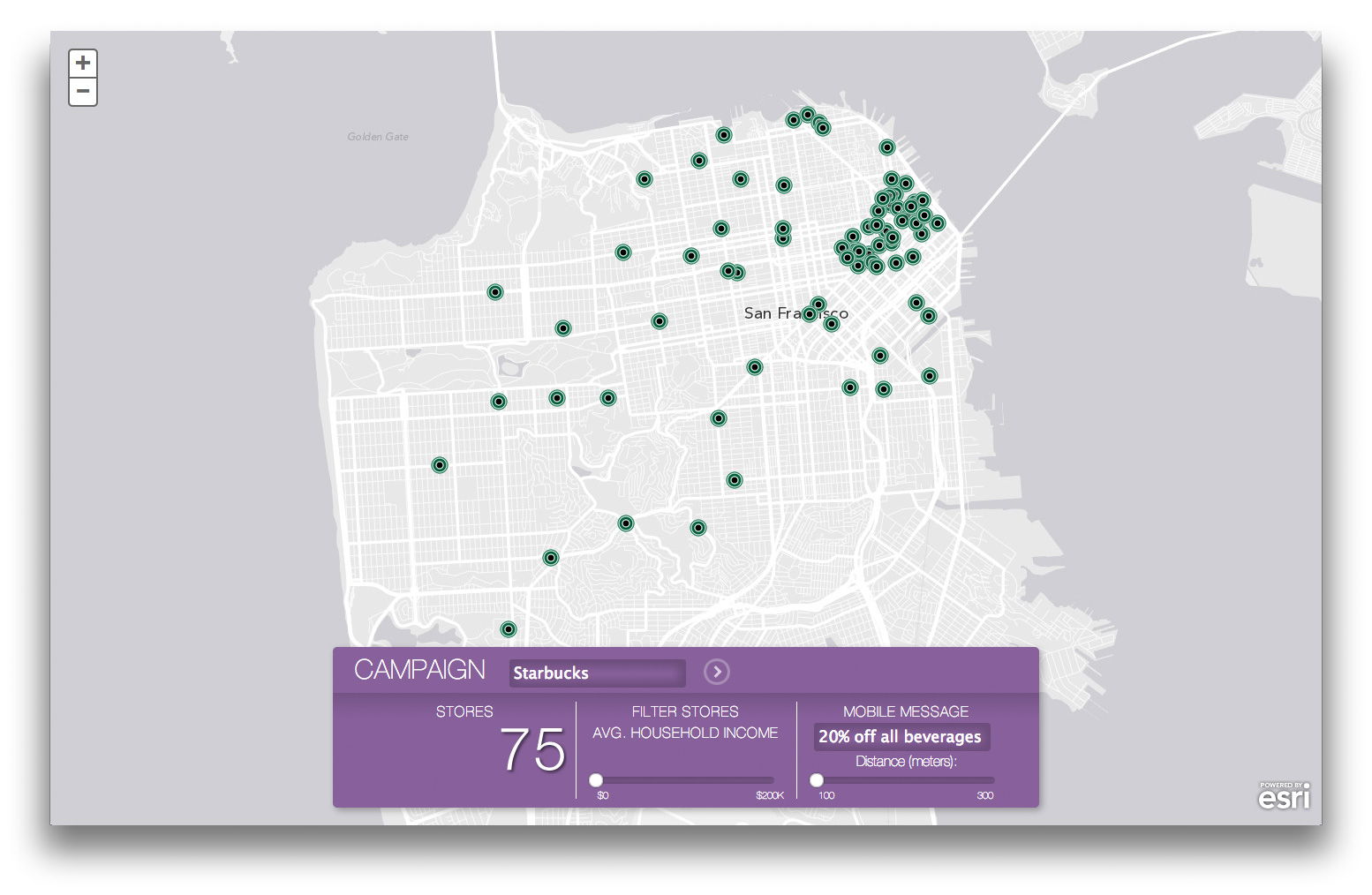 Starbucks heeft sinds vorig jaar een nieuw geofencing dashboard en is het systeem op dit moment in Noord-Amerika aan het uitrollen. Het dashboard biedt duidelijkheid in gegevens en informatiestromen (big data) via een eenvoudige bediening. Voor de ontwikkeling van dit dashboard was het voor Starbucks belangrijk om in één omgeving te kunnen zien wat de resultaten zijn in een bepaald gebied en binnen dit gebied te kunnen segmenteren. Data zoals (regionale) marktonderzoeksresultaten, het gemiddelde inkomen per blok maar ook het uitgavenpatroon, leeftijd en type persoon waren dusdanig belangrijk voor de regiodirectie dat zij dit er ook in wilde terug zien.