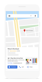 De belangrijkste stap hiervoor is het online ‘vullen’ van de fysieke winkelvoorraad. Het promoten daarvan wil je natuurlijk vooral doen als je een speciale aanbieding hebt of als een product online is uitverkocht, maar je er nog wel voorraad van hebt in je fysieke winkels. Google heeft hiervoor local inventory ads ontwikkeld. Deze advertenties worden zichtbaar als een consument zich dicht bij een van je fysieke winkels bevindt (binnen een straal van 50 kilometer). Klanten kunnen dan precies zien of het product waar ze naar op zoek zijn nog op voorraad is in die winkel. De perfecte combinatie van online en offline media.