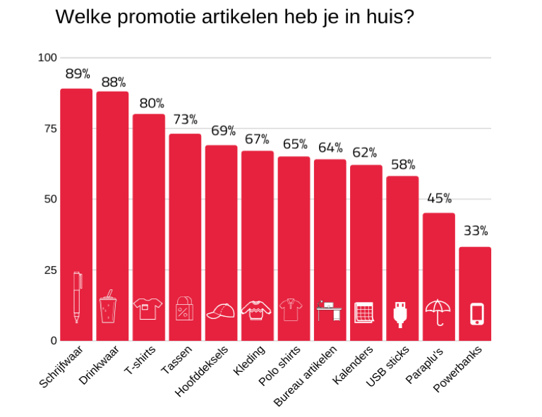 Wist je dat negen op de tien mensen ten minste één promotieartikel met logo bezit? Pennen bewaren mensen het langst, maar ook promotiekleding en bureau-artikelen doen het goed.