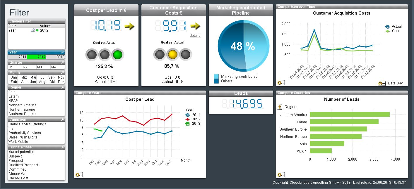 Zonder al te veel van de context te begrijpen zien we direct dat het goed gaat met cost per lead en we moeten werken aan onze customer aquisition costs. Ook de grafieken zijn gemakkelijk te begrijpen. Nu kun je aan de slag met de ‘hoe-vraag’. Hoe krijgen we deze kosten op peil en al onze stoplichten op groen? Dit brengt me bij het laatste punt van een goed KPI-dashboard.