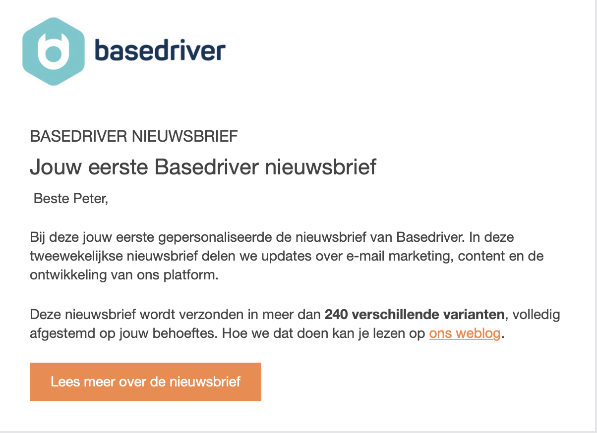 Voor het model maakt het niet uit of een ontvanger een bestaande klant is. We maken dit onderscheid met de content die ze krijgen. Bestaande gebruikers krijgen in de nieuwsbrief bijvoorbeeld praktische tips uit onze kennisbank. In de re-activatiefase ontvangen ze trainingsvideo’s en hulp bij gebruik van Basedriver.