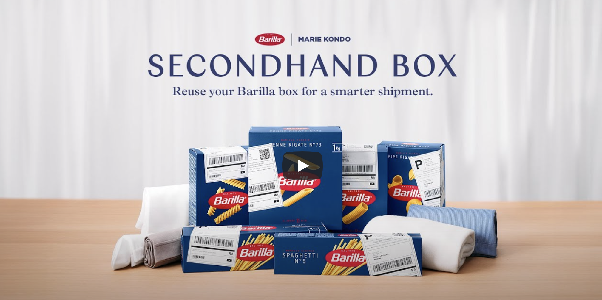 Pastadozen zijn de perfecte verpakking voor de pasta. En volgens Barilla ook om te herbruiken. Want pasta laat geen residu achter en de dozen zijn over het algemeen groot genoeg voor andere spullen. Dit is duidelijk de inspiratie voor een nieuwe campagne van Barilla die de herbruikbaarheid van dozen promoot. De campagne heeft opruimgoeroe Marie Kondo ingehuurd als woordvoerder en hun campagnevideo begint met Kondo die zorgvuldig een paar sokken opvouwt die ze blijkbaar via een tweedehandsmarkt heeft verkocht. Wie koopt er overigens sokken op een vinted platform? Ik snap dat merken een rol willen spelen binnen het thema duurzaamheid. Maar hoe ver ga je dan? De identiteit vormt het uitgangspunt voor wat wel of niet past en bijdraagt aan het merk. Maar inmiddels bekruipt mij het gevoel dat deze grenzen steeds verder vervagen en merken een speelbal worden om kromme bananen recht te praten. Heel benieuwd wat jullie van deze campagne vinden.