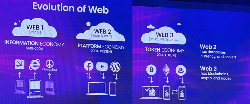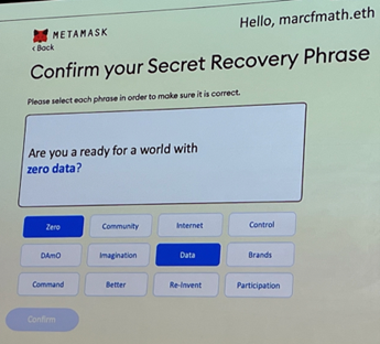 Marc Mathieu, SVP and Co-founder of Salesforce Web3 Studio, ging dieper in op het verhaal van Patrick Rice. In zijn ogen gaan we naar een wereld toe waarin nog “nul data” is, omdat consumenten dankzij Web3 de controle hebben over hun eigen data. Hij vroeg zich af of marketeers wel voorbereid zijn op zo’n wereld. Zijn marketeers wel in staat om hun verbeelding te gebruiken teneinde hun merk te heruitvinden voor de metaverse. Boute uitspraken, maar hij zette op deze manier wel aan tot nadenken. Zijn statement “the wallet is the new cookie” vond ik tot slot een mooie metafoor om de volgende stap van het web begrijpelijk te maken.
