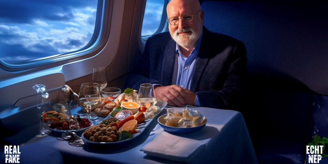 In de aanloop naar de Tweede Kamerverkiezingen dook er online een nepbeeld op van GroenLinks-PvdA-lijsttrekker Frans Timmermans aan boord van een vliegtuig, genietend van een copieuze maaltijd. De foto, duidelijk nep en gegenereerd door AI, toonde hem met zes vingers aan zijn rechterhand en een vervormd brilmontuur. Ondanks de duidelijke valsheid, verspreidde het beeld zich snel, met meer dan 85.000 weergaven, en voedde het de beeldvorming van Timmermans als een ‘kaviaarsocialist’.